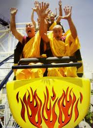 And in case I’ve gotten too serious, here is the image from a greeting card my friend Helen sent me once. She wrote that it was a combination of things I liked and didn’t like: monks and roller coasters.