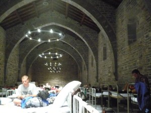 We were awoken the next morning by what I thought were church bells, but when the choir came in, I was a bit more skeptical. The nuns of the hostel in Roncesvalles used a tape recording of choral music to get you out of bed; a trustworthy tactic to jolt the 200 hikers out of the largest one-room hostel on our trip. It was a converted church lined with about 8 rows of bunk beds. What should have been loud and noisy, was more like a fun peaceful summer camp. And in spite of the impressive musical arrangement of snores during the night, I slept quite soundly. I don’t think my body would have let me done anything else after the day before.