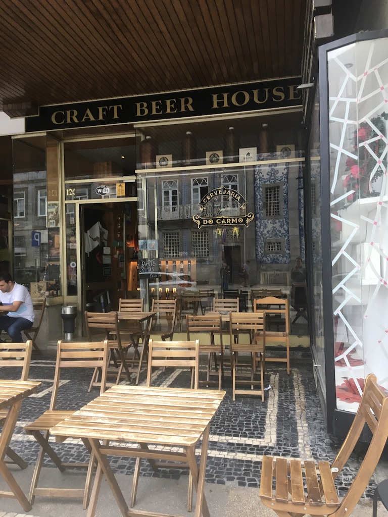 I’m still too stuffed to consider dinner so I stroll for a block or two to find a drink. I know I’m never gonna be able to get to bed at a normal hour so I might as well get tipsy. And then, right in front of me, I found Cervejaria do Carmo: a craft beer bar! There are two people sitting outside but all the other tables are open. It is a journaling dream!