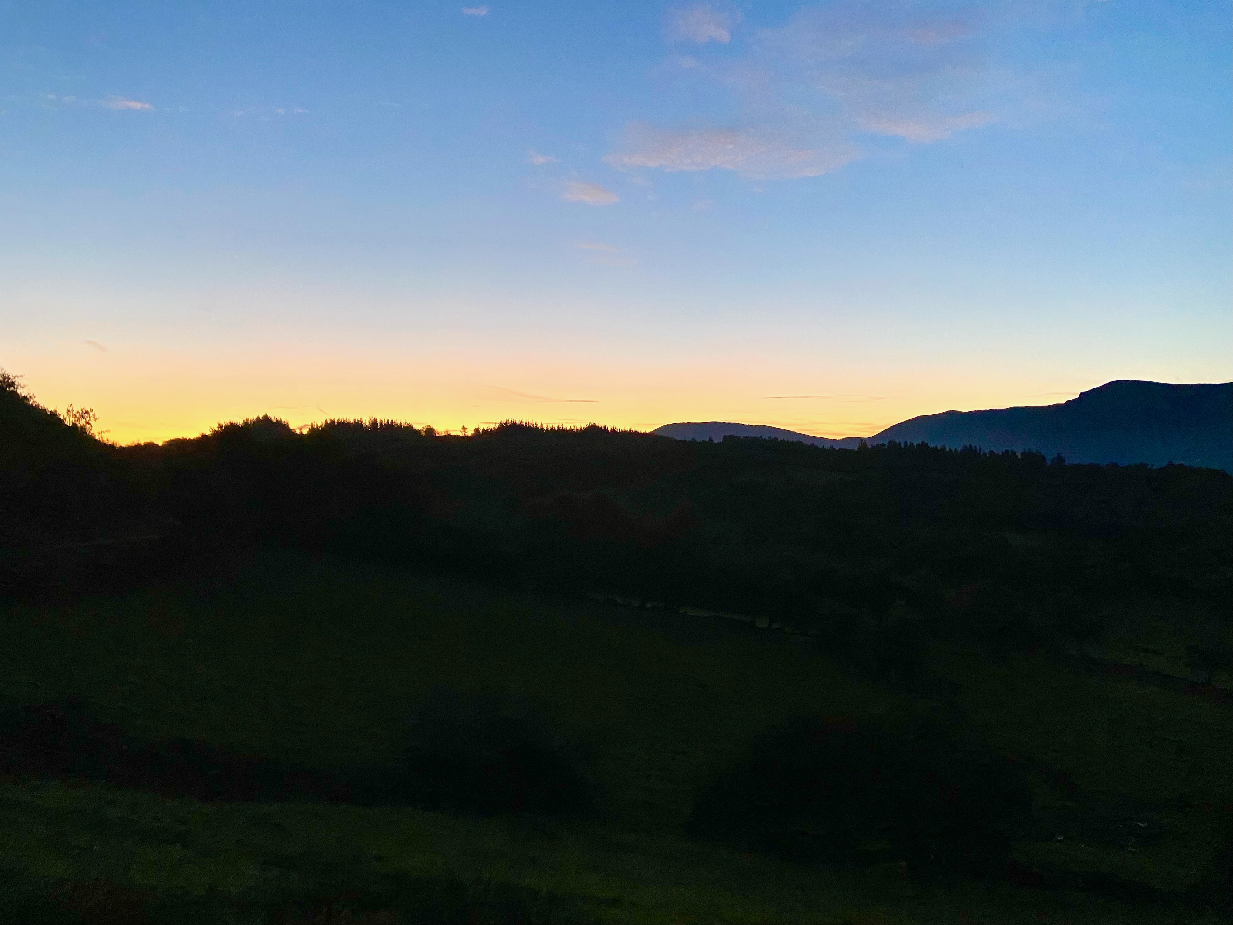 At some point in the climb, Lynn, Susan, and Claire waved us on and said they’d catch up later. Ben and I climbed in silence and eventually made it to a much-welcomed plateau where we watched the sunrise above the farms before us. We’d come so far. We were so far from that canceled flight, the rainstorm the night before our hike, or the first night in Molinaseca.