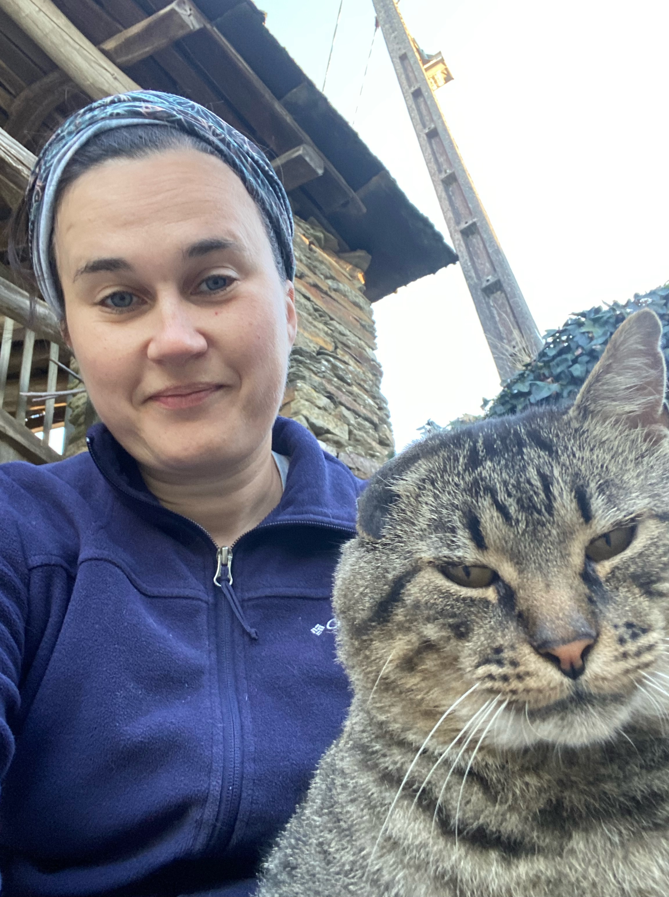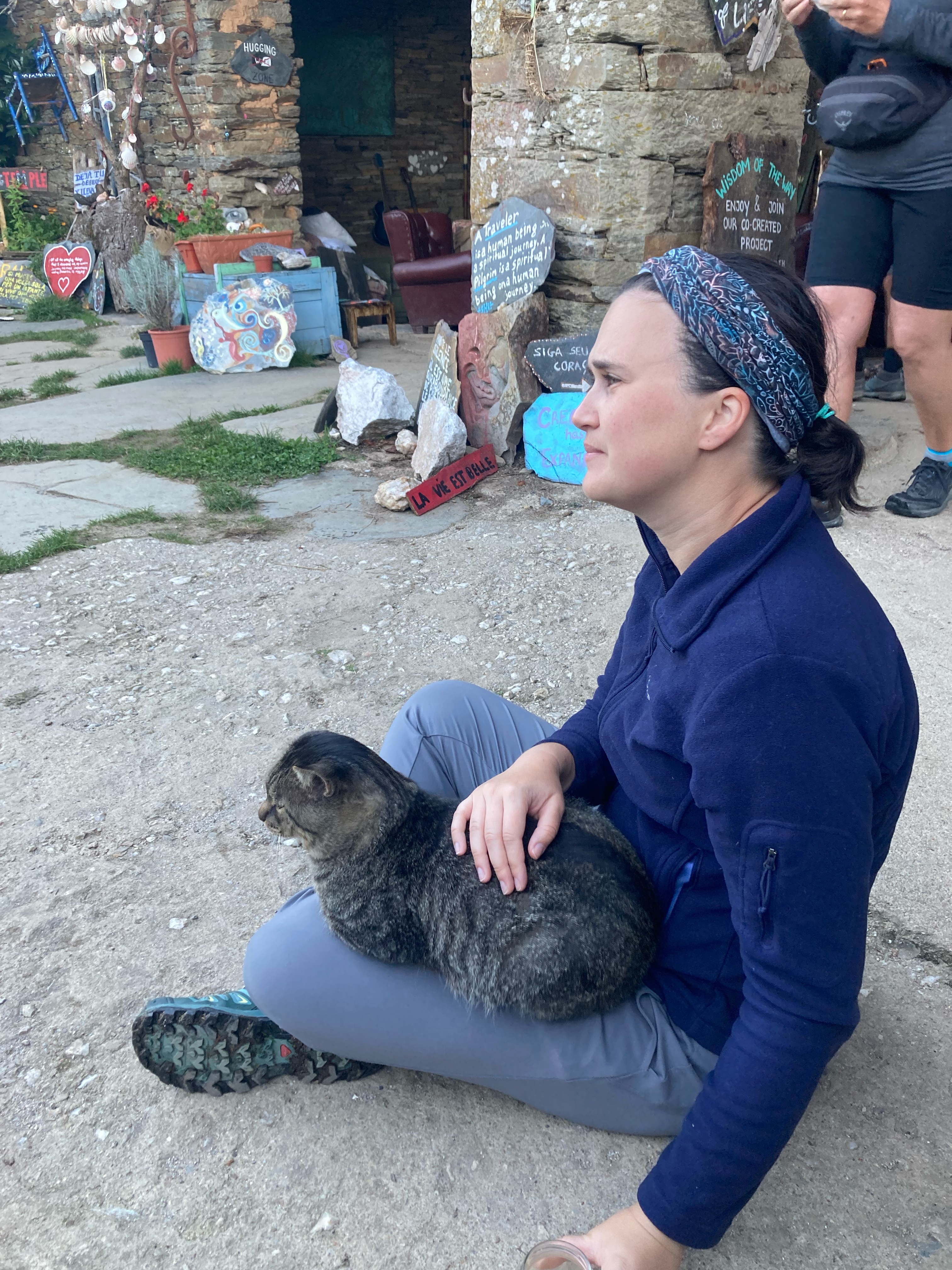 A young guy of maybe 30 greeted us and asked how we wanted our coffee. The whole thing was donation-based. He welcomed us in and we took a seat in the garden next to a large cat with one ear. I sat on the ground to welcome him over.